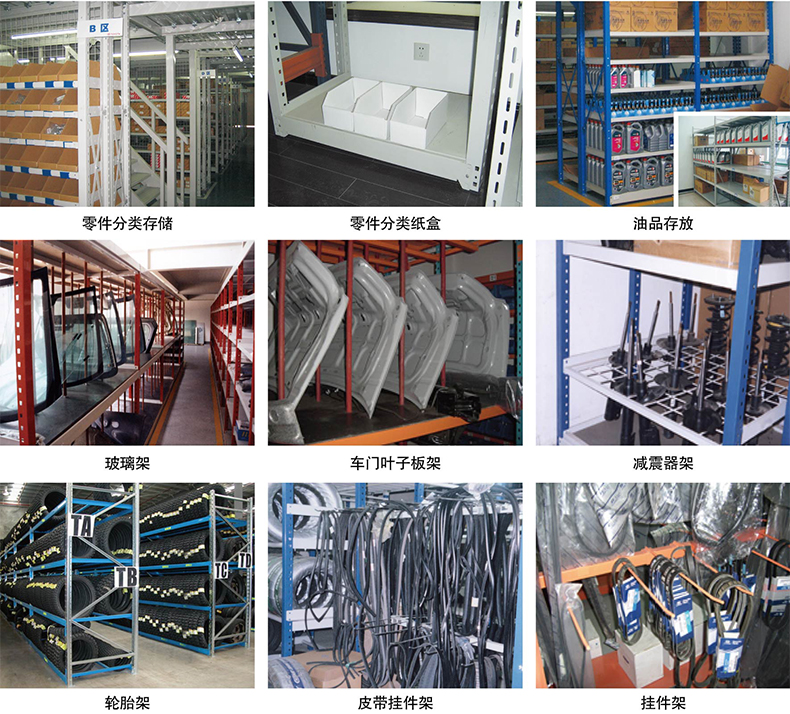 ![]() 全組合式結(jié)構(gòu),針對(duì)汽車(chē)行業(yè)備件特點(diǎn),分為:小件架、中件架、大件架、玻璃架、車(chē)門(mén)架、輪胎架、掛件架、減震器架、消音器架、油料架、保險(xiǎn)杠架等;單元貨架每層承重為200-400kg不等。 ![]() |