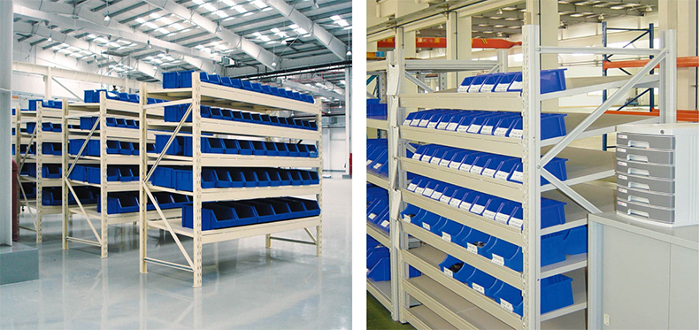 斜面式中量型貨架層板采用一定斜面設計與安裝,常擺放于工位作業旁配合周轉箱存放物料,實現“先進先出”的物流作業要求。傾斜面板的結構特點很好的改善了人機界面,方便作業者的揀貨作業并提高效率,用一般應用于物流量相對較小的工況。可配合各類周轉箱、零件盒使用, 或直接放置零部件,方便存取。可實現現場及時補料的功能。模塊化的零部件,可現場組裝,降低運輸成本。 | |||||||