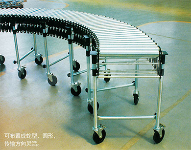 伸縮型輥筒輥道機是利用可伸縮的組件做機架的輸送機,機體可自由變向,改變任意角度,支腿高度可以調節,可將作業平面調成傾角斜面,使輸送更省力快捷;下部設有腳輪可以移動, 并可按需要形成直段和圓弧段,適用于需要靈活布置的移動式 無動力輸送機,腳輪可帶剎車,伸長長度可限位。